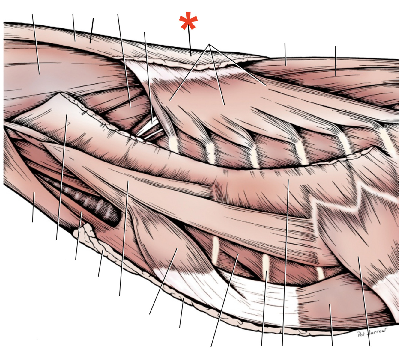 Insertion: Margo dorsalis and dorsomedial surface of scapula