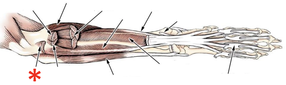 • M. flexor digitorum profundus (ulnar + humeral heads)