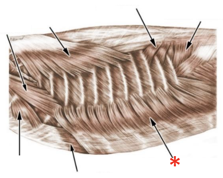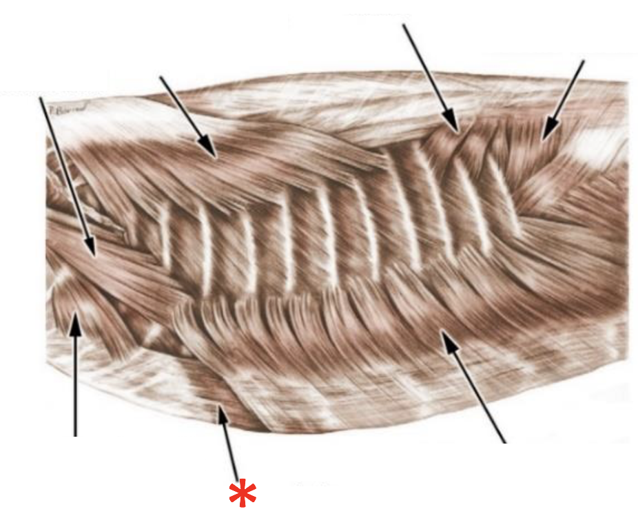 Origin: Fascia thoracolumbalis, lateral surface of ribs
