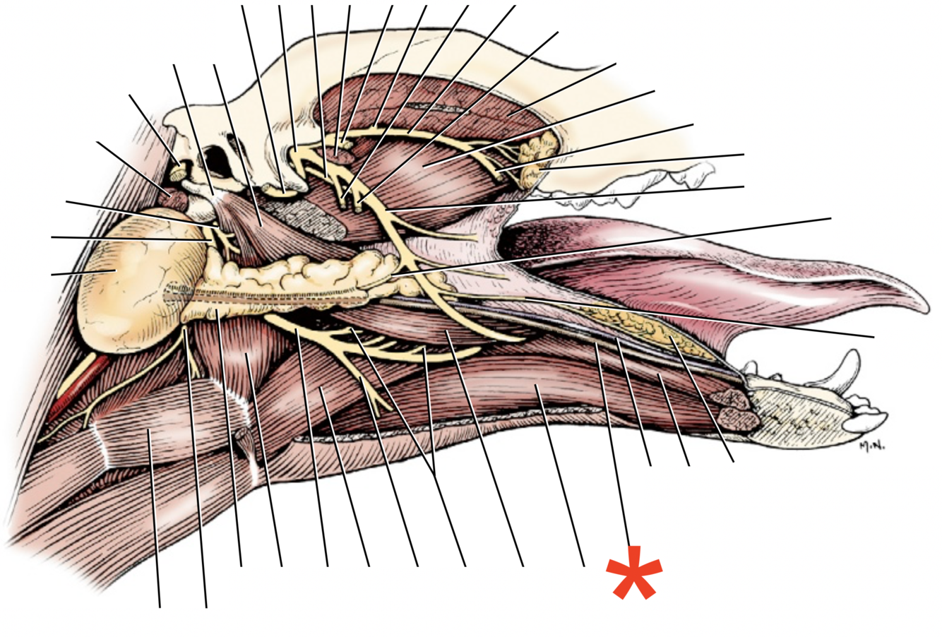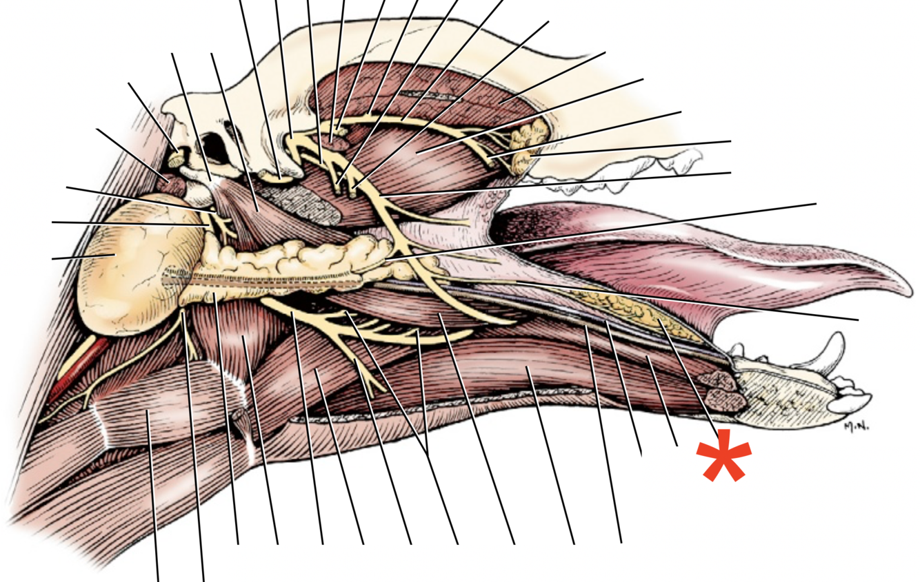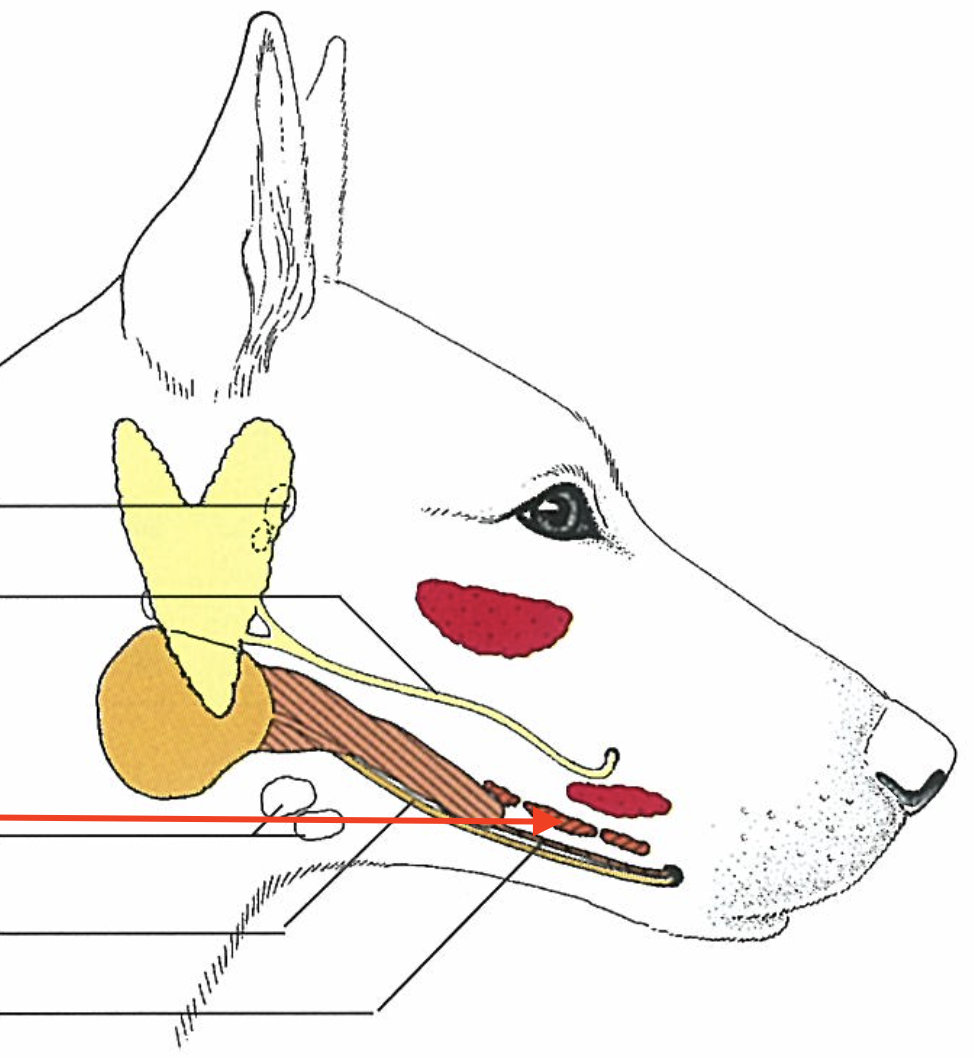 How are n. lingualis and the monostomatic and mandibular ducts located?
