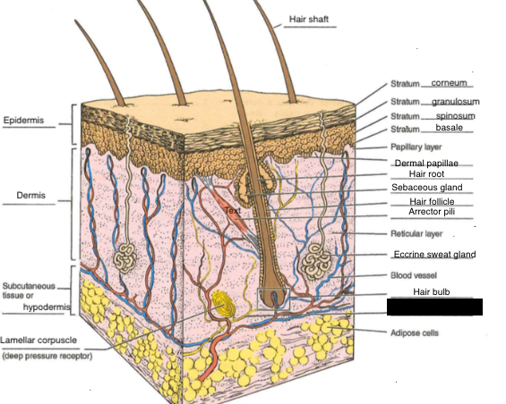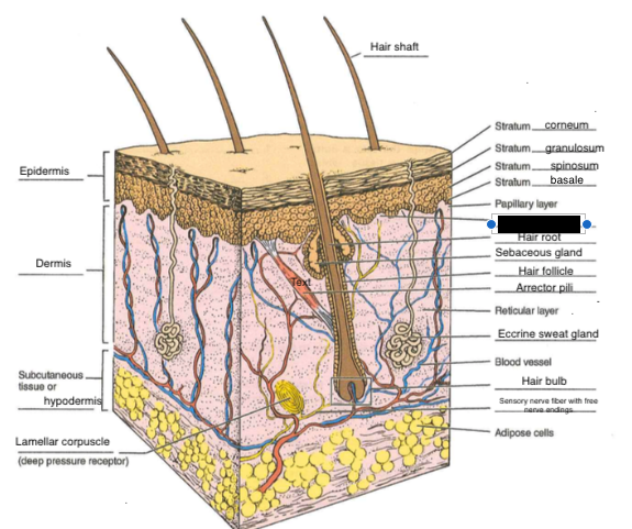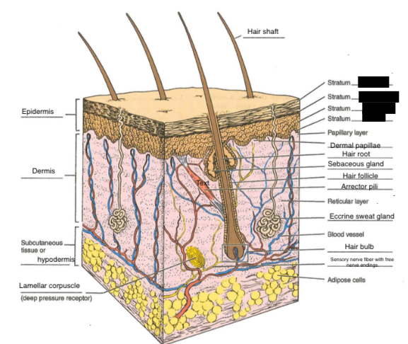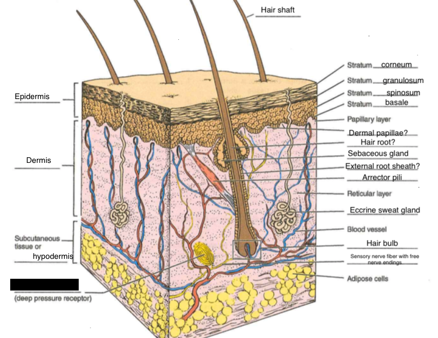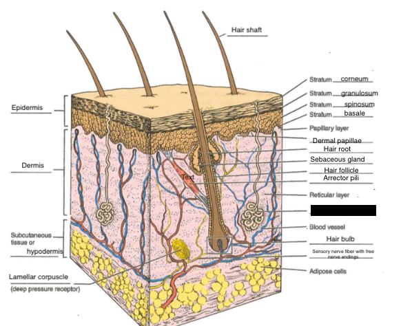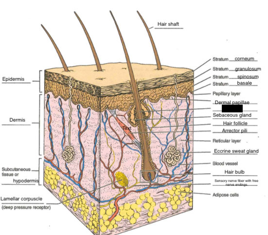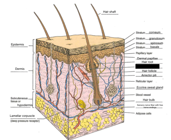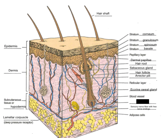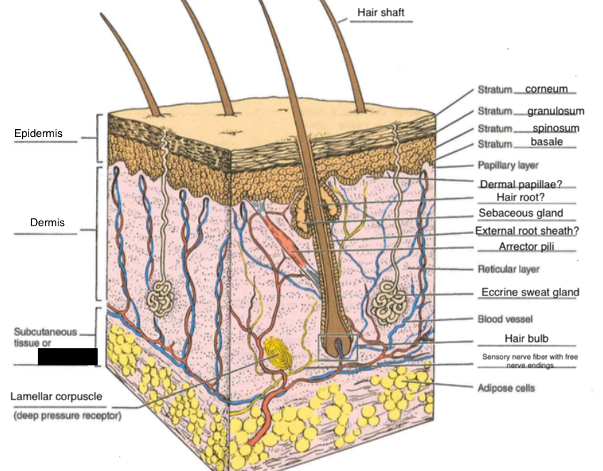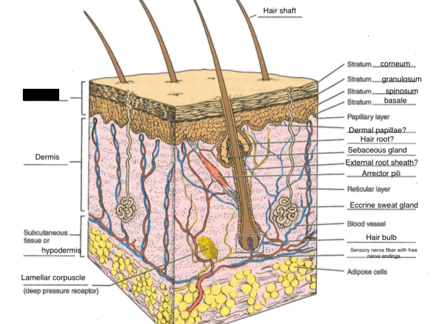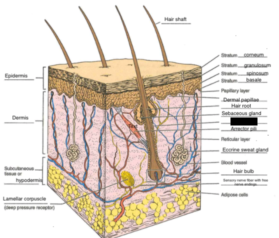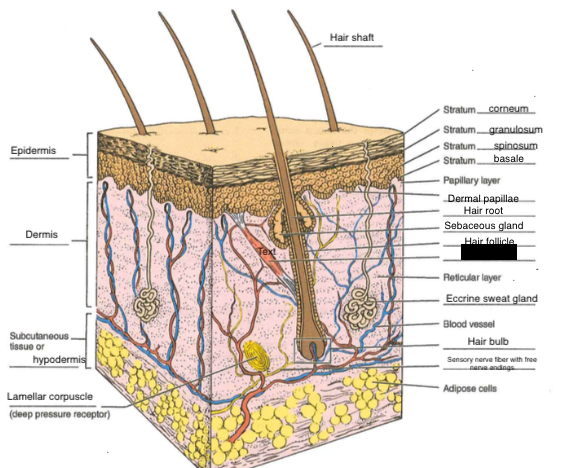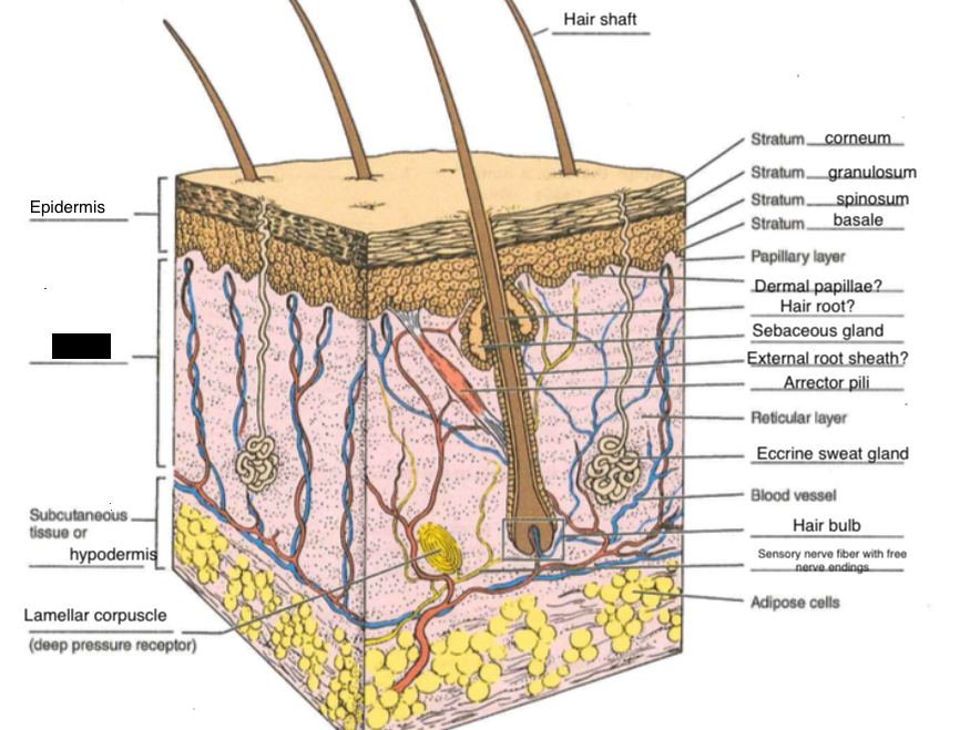 stratum corneum, stratum granulosum, stratum spinosum, stratum basale