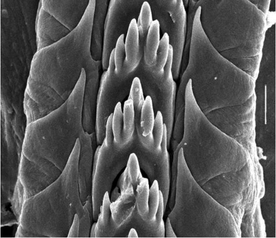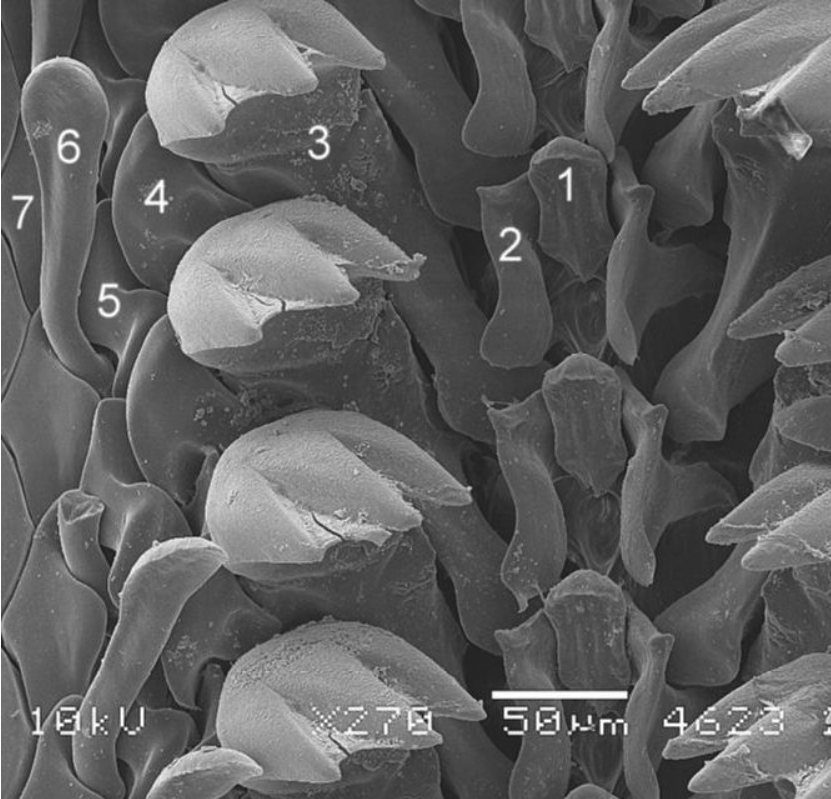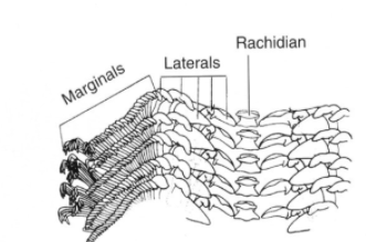 Herbivore radula: contain lots of small teeth, used for scraping plant matter from rocks