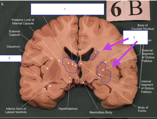 Mamillary Bodies. Section is cerebrum and diencephalon.