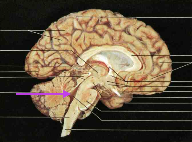 Cerebral Aqueduct. Part of Midbrain. Section is brain stem.
