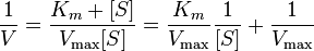 1 / v = 1 / Vmax + Km / Vmax x 1 / [S] (eq from the picture)
