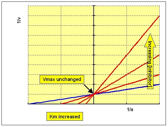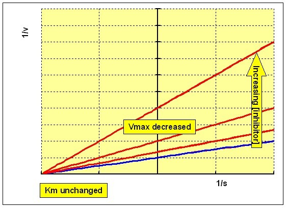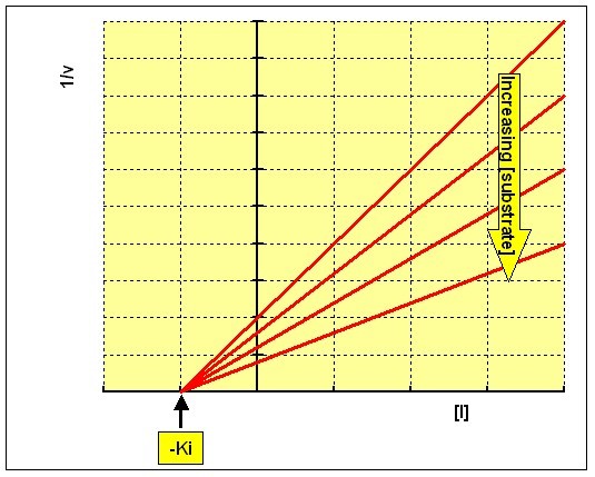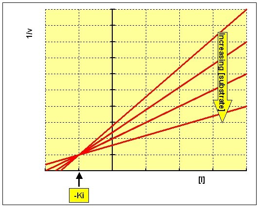 an indication of how potent an inhibitor is; it is the concentration required to produce half maximum inhibition.Plotting 1/v against concentration of inhibitor at each concentration of substrate (the Dixon plot) gives a family of intersecting lines.