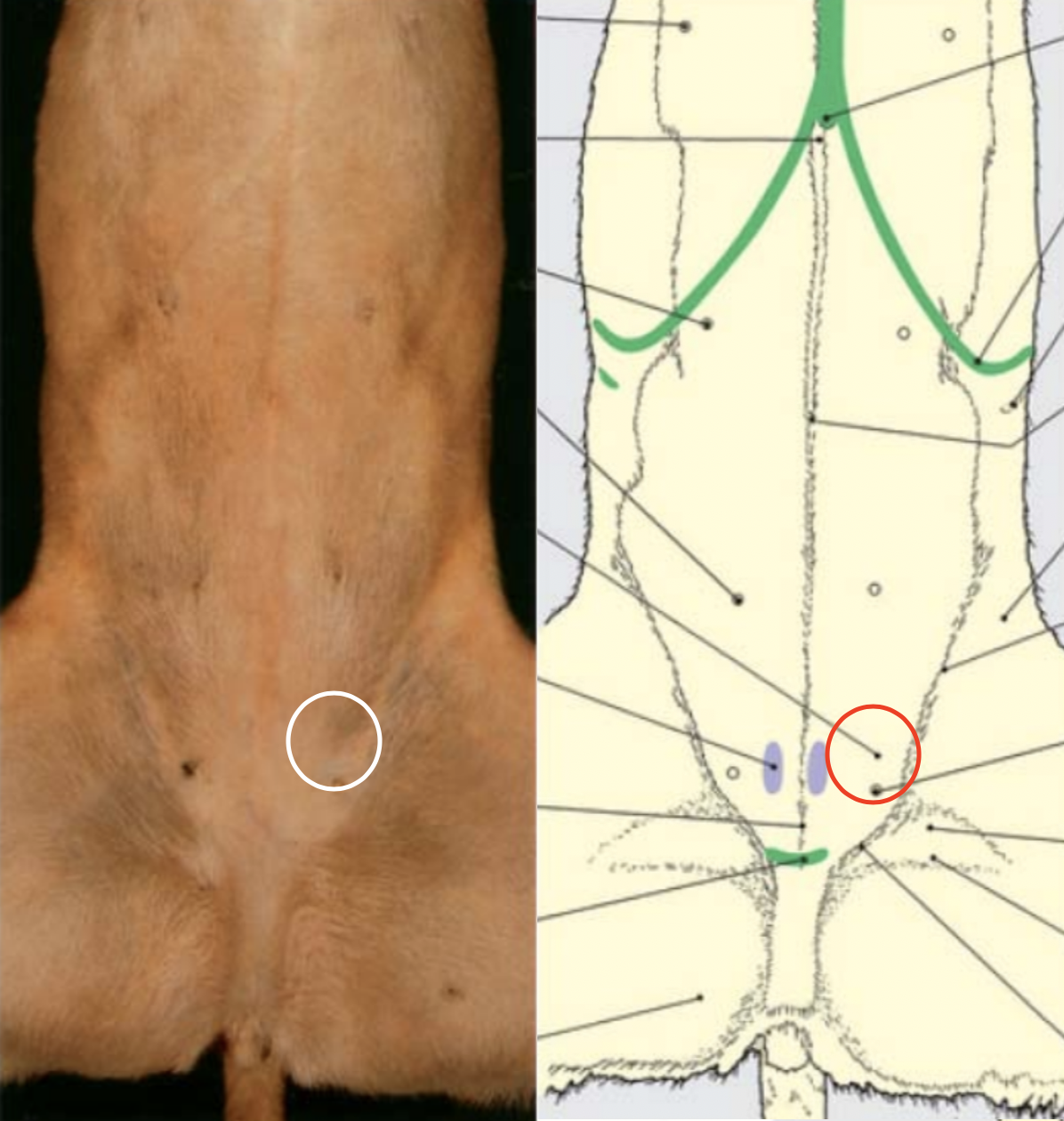 Between the tendons of: