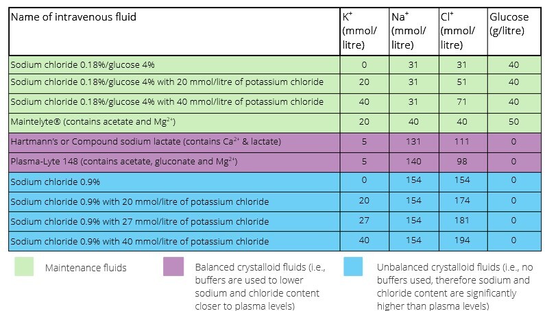 1mmol/kg/day potassium, sodium and chloride