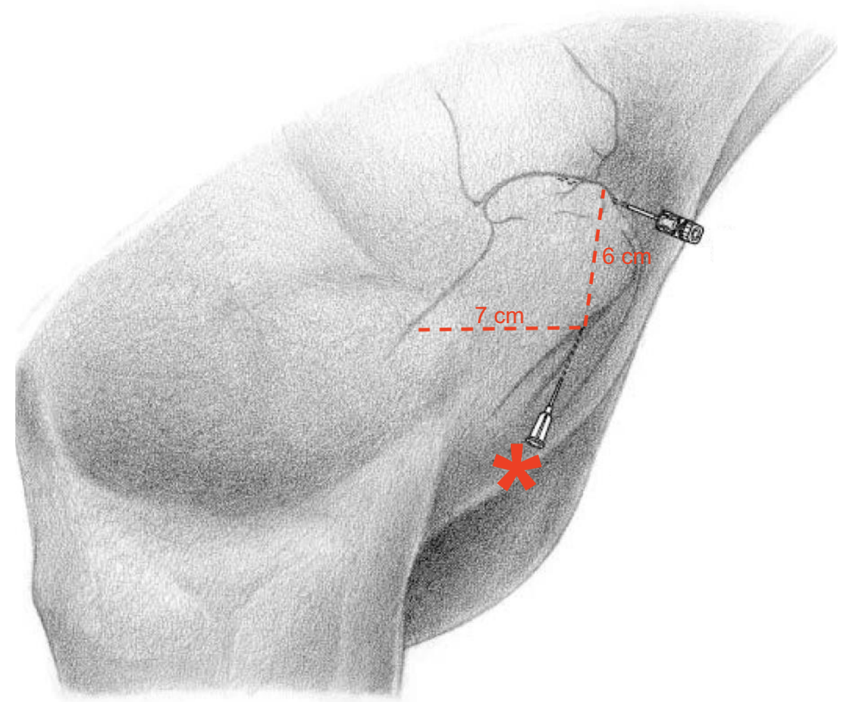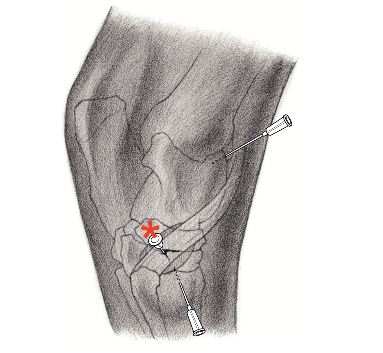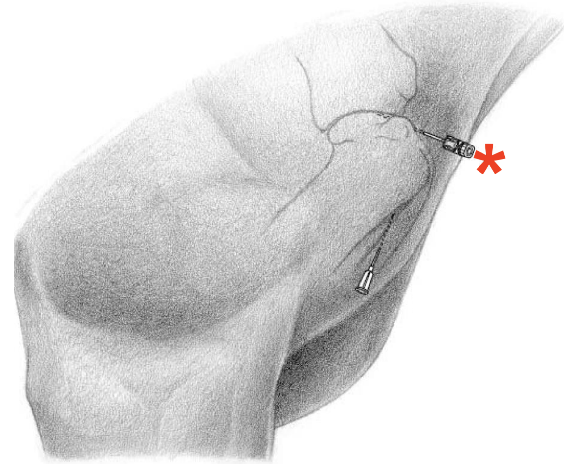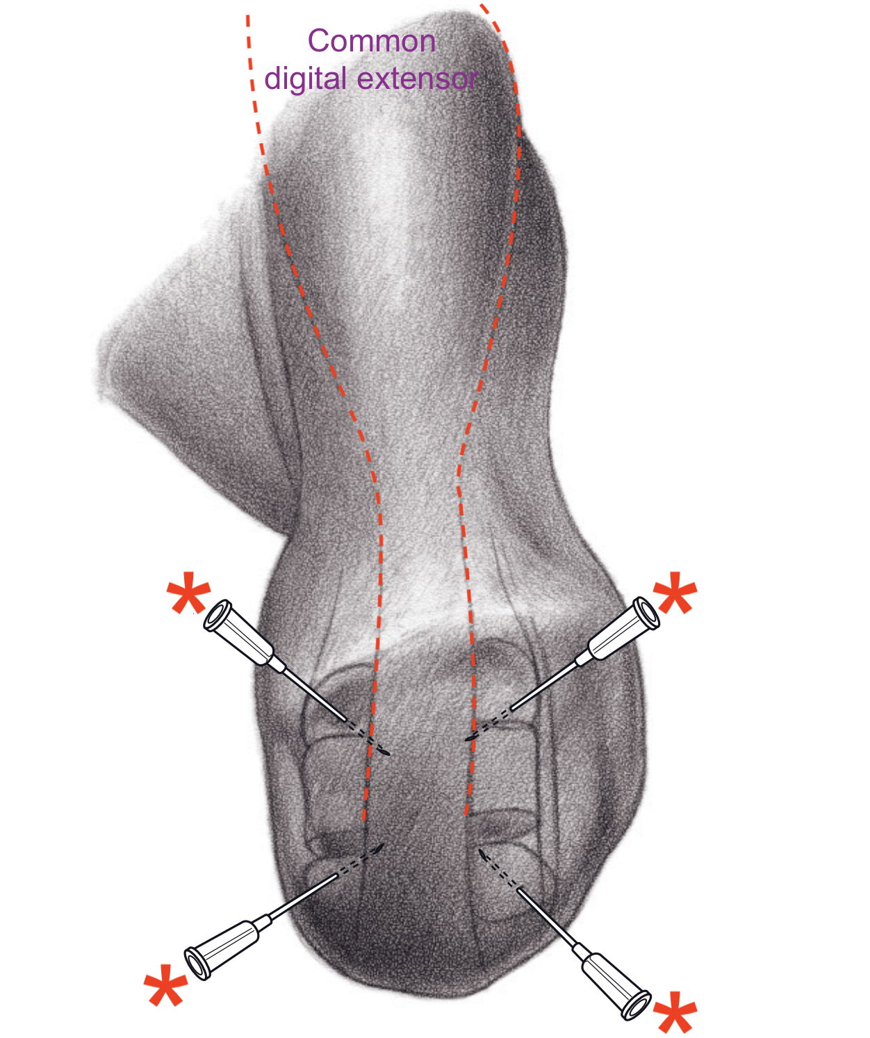Describe needle access of the distal digital flexor tendon sheet (Dorsolateral approach)