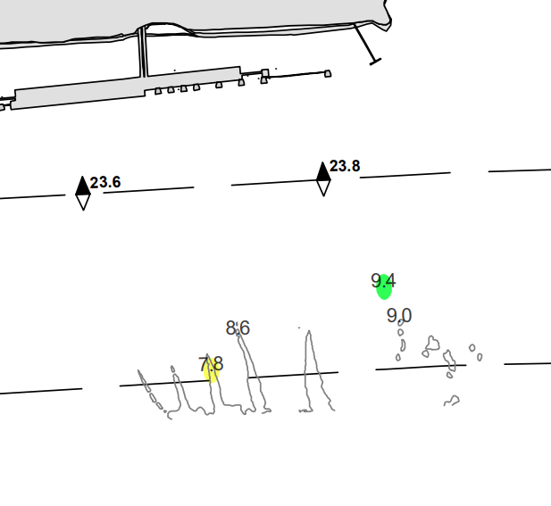 0.32’ off Gateway to monitor once West Blyth and Lower Hope in transit