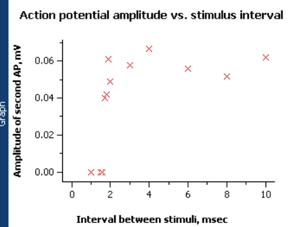 The graph above shows the relationship between the action potential amplitude vs the stimulus interval as demonstrated in the earthworm. What is the maximum possible frequency of action potential generation in a short-term experiment?