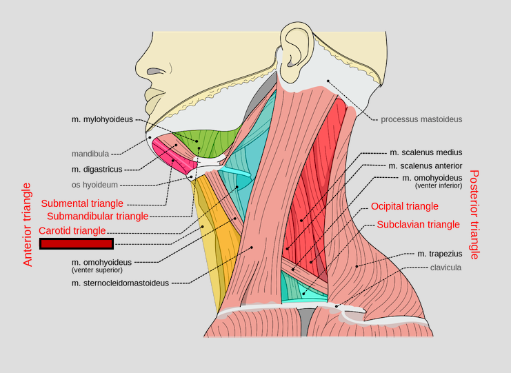 carotid (hypoglossal nerve, internal/external carotid artery)