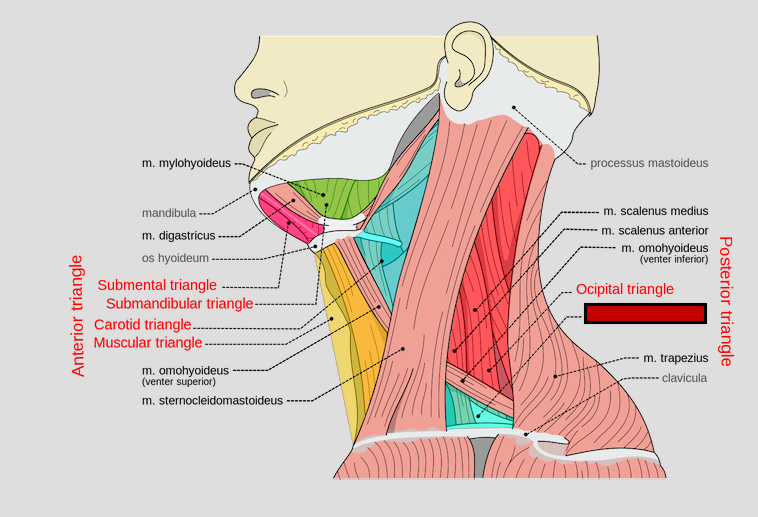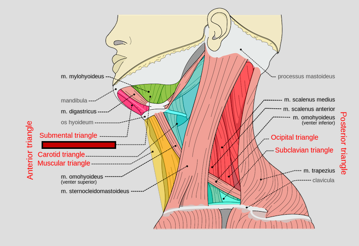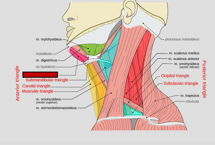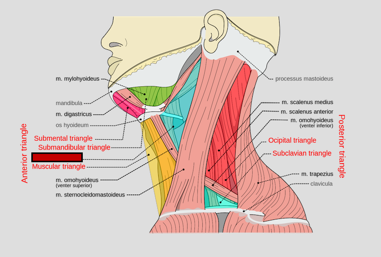 muscular triangle (omohyoid, sternothyroid, sternohyoid)
