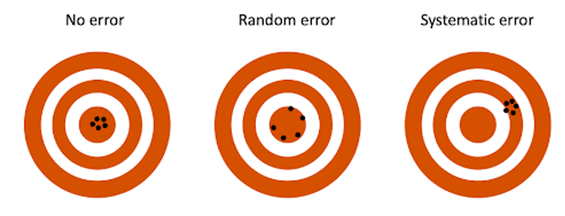 Something that causes results to be randomly spread out around a true value (eg repeat measurements for freefall)