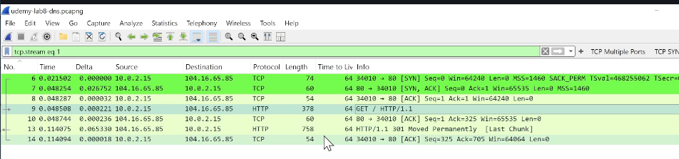 [conversation completeness] - how much of the entire conversation did wireshark capture.