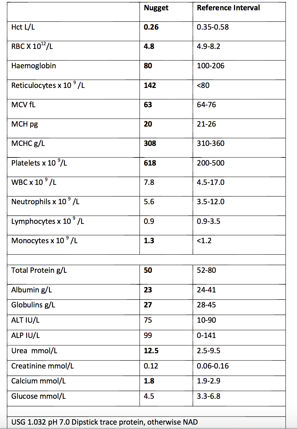 PPP Clin Path Prac 9 - Metabolic and Endocrine Case 1 – Sam the dog 6-year -old MN Labrador Retriever History: His owner is worried he has arthritis as he can’t walk as far now . Appetite normal. PE: Obese. HR 70 bpm, panting, T 37.3C, pink mucous membranes, CRT \<1s. BWT 40kg. Dull dry coat 1. List the problems identified on the laboratory results-- for each problem you ID, list the most common disease conditions that may be associated with this abnormality.