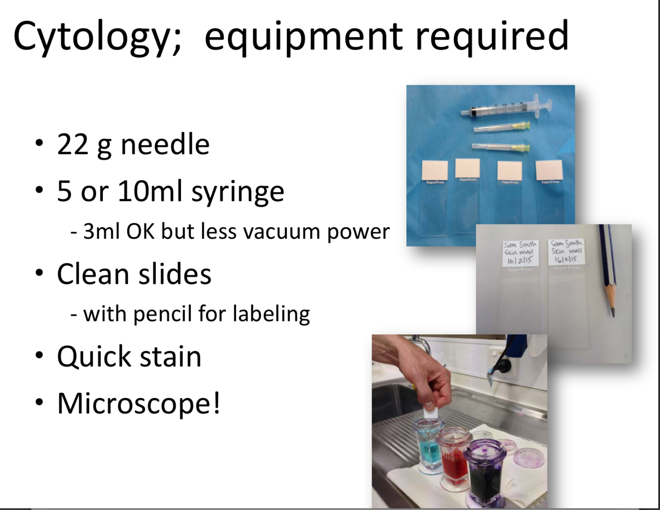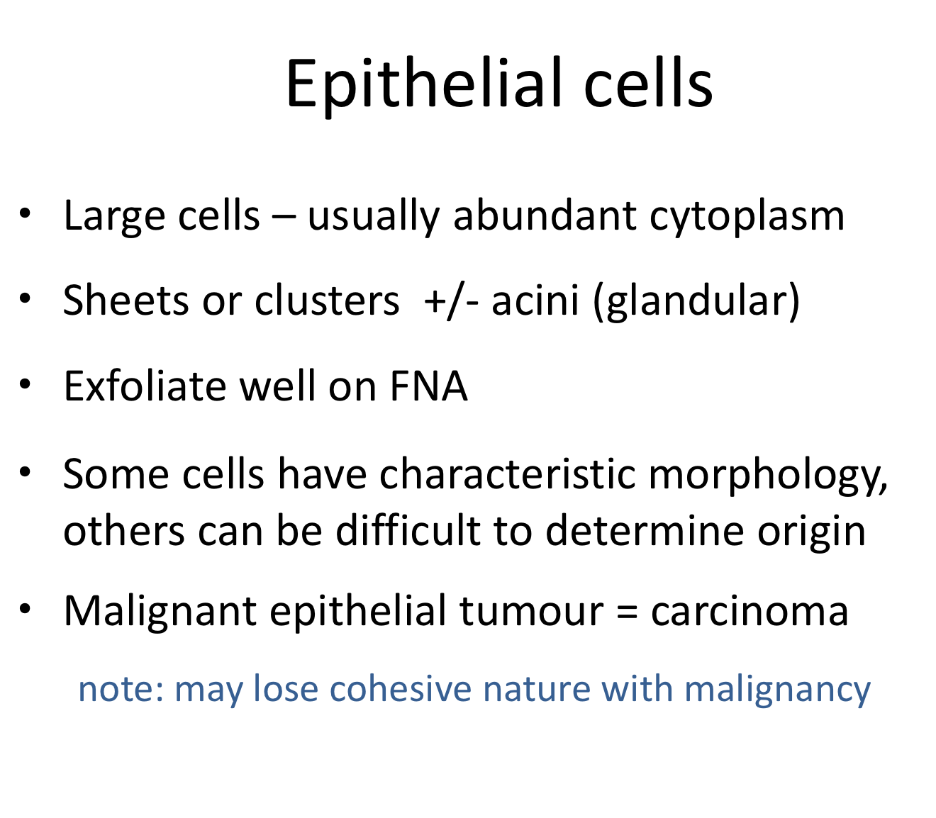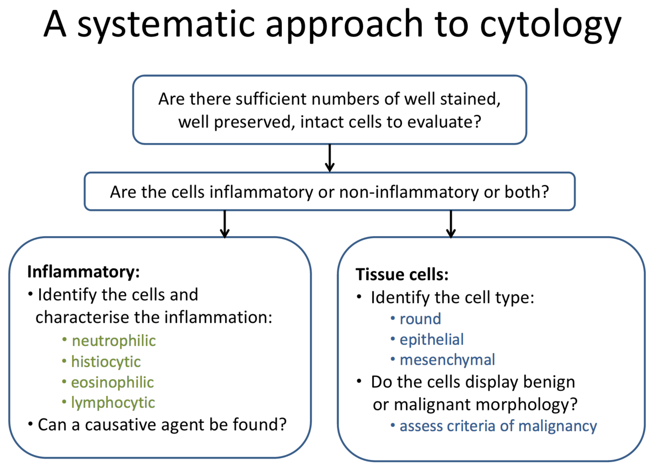 * atypical cells in the feathered edge- round nucleus, cytoplasm packed with dark granules– MAST CELLS (other ddx is basophil– in cats lavender granules)