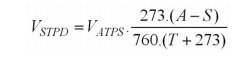 How are volumes converted between atmospheric temperature pressure saturated (ATPS) and standard temperature pressure dry (STPD)?