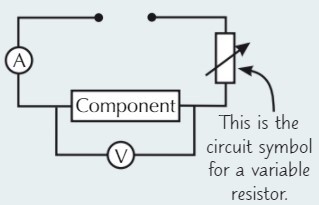 • You can investigate the IV characteristic of a component using a test circuit like the one in the diagram below.. Use the variable resistor to alter the potential difference across the component and the current flowing through it, and record V and I