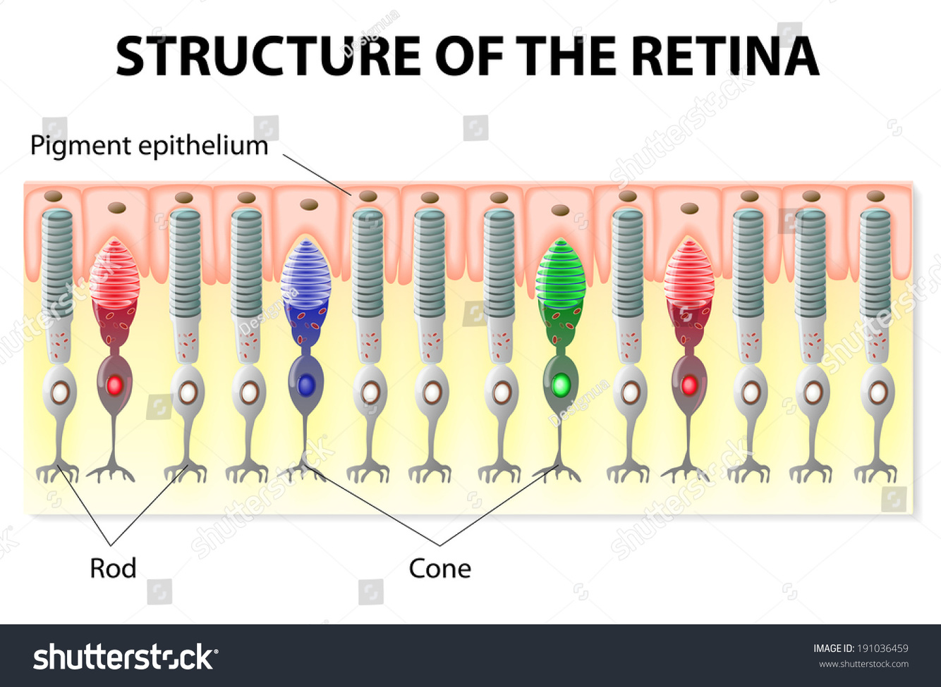 NOTE: photopigments are sensitive to different wavelengths of light, that is why they are red, green and blue