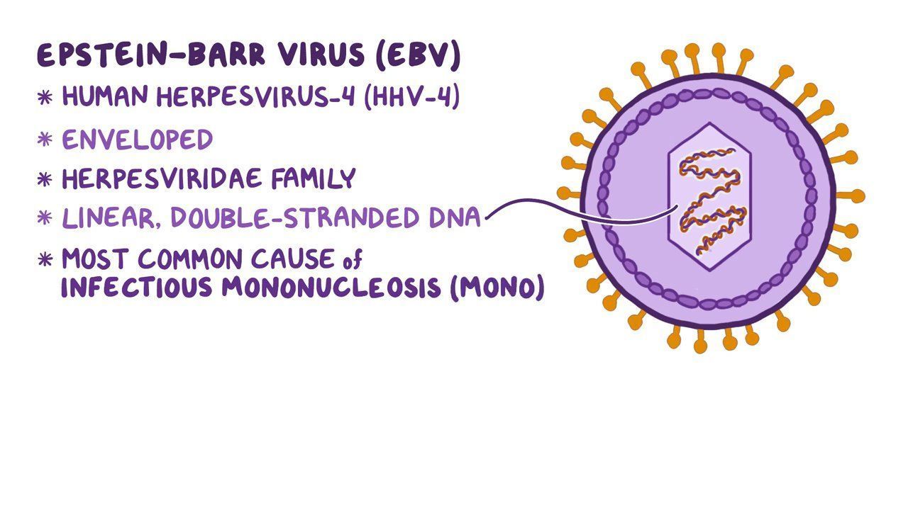 EBV, also known as humna herpesvirus 4, is a member of the herpes virus family. It is one of the most common human viruses. EBV spreads most commonly through body fluids, primarily saliva. EBV can cause infectious mononucleosis (glandular fever), and other illnesses.