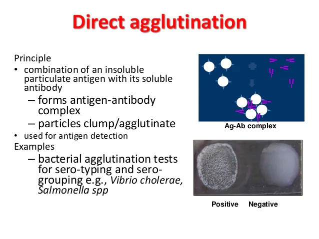 Febrile agglutination tests, such as Widal and Well-Felix, are examples of direct agglutination.