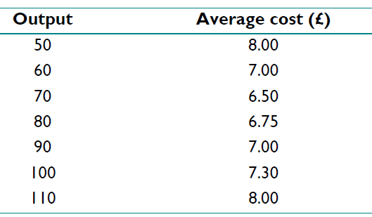 The correct answer is C. Since the selling price of each turkey is £10, the marginal revenue, i.e. the revenue gained from one additional turkey, is £10. To maximise profit, marginal revenue must equal marginal cost. Thus marginal cost must be calculated at the different levels of output. The average cost of producing 90 turkeys is £7; therefore, the total cost of producing 90 turkeys is £630. The total cost of producing 100 turkeys is £730. Therefore, the cost of producing the additional 10 turkeys is £100 or £10 per turkey. At this output level, total profit equals £270 (£1000 − £730). The firm would achieve the same profit producing 90 turkeys, since for the additional 10 turkeys marginal revenue equals marginal cost, but an output of 90 is not an option. The same solution can be reached by calculating total revenue and total cost for each level of output.