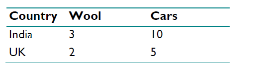 Suppose that in India and the UK the costs of producing wool and cars measured in man/days per unit are as given in the table.