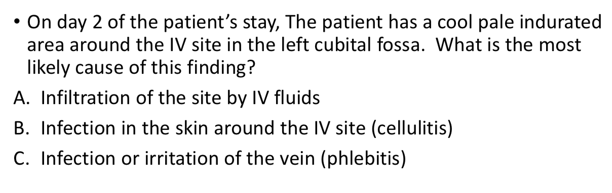 A. Infiltration of the site by IV fluids
