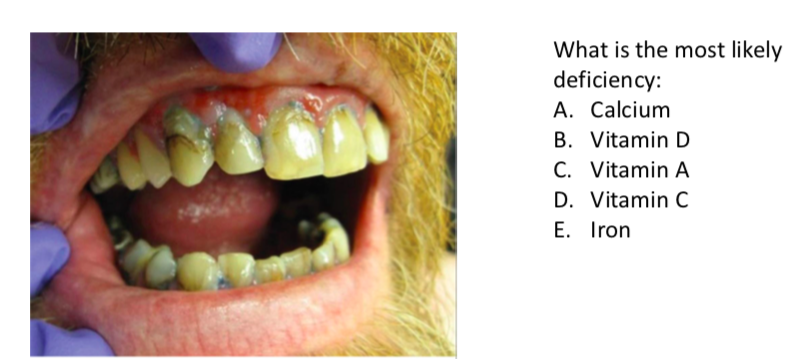 D. Vitamin C -> this is scurvy