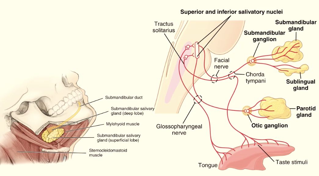 Describe the neurovascular supply to the submandibular gland