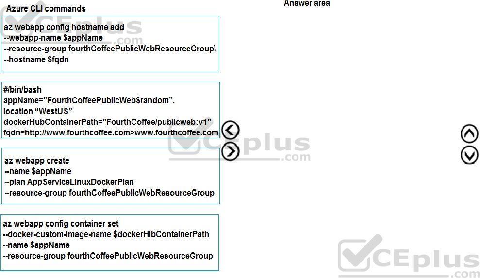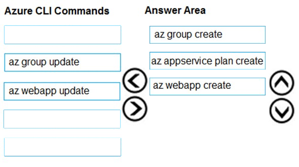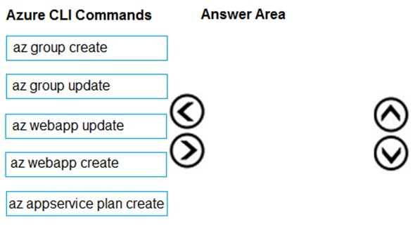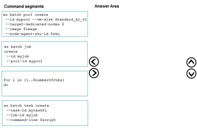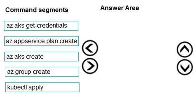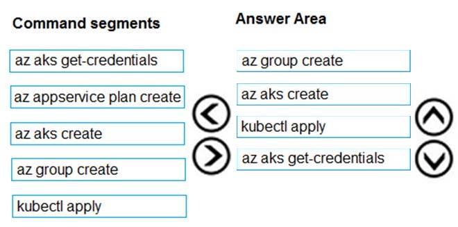 In which order should you arrange the commands to develop the solution? To answer, move the appropriate commands from the list of command segments to the answer area and arrange them in the correct order.