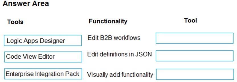 What should you use? To answer, drag the appropriate tools to the correct functionalities. Each tool may be used once, more than once, or not at all. You may need to drag the split bar between panes or scroll to view content.
