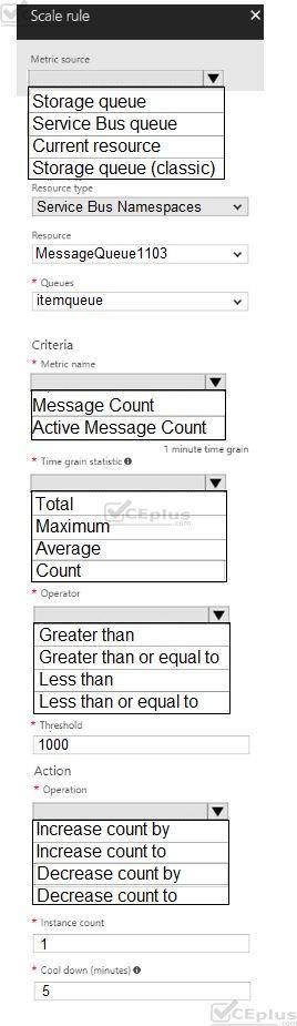 How should you configure the Scale rule? To answer, select the appropriate options in the answer area.