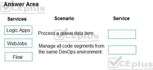 Which service should you use for each scenario? To answer, drag the appropriate services to the correct scenarios. Each service may be used once, more than once, or not at all. You may need to drag the split bar between panes or scroll to view content.