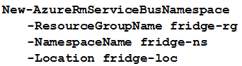 # Create a Service Bus messaging namespace with a unique name. Example: namespaceName=myNameSpace$RANDOM az servicebus namespace create –resource-group $resourceGroupName –name $namespaceName –location eastus