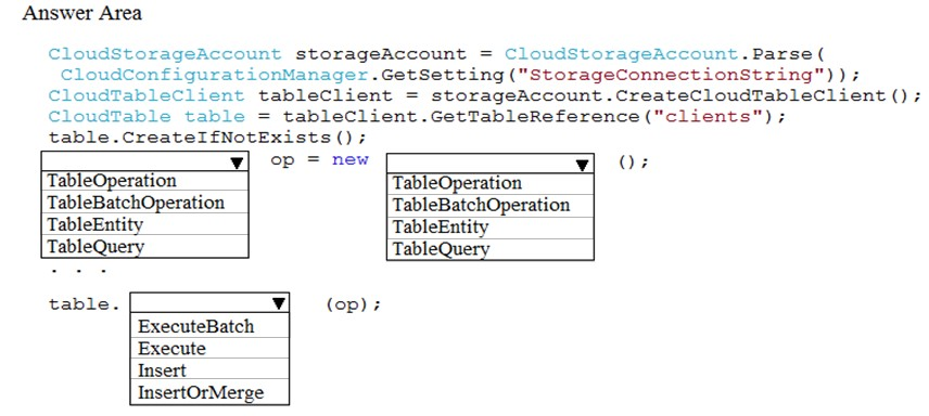 How should you complete the code? To answer, select the appropriate options in the answer area.