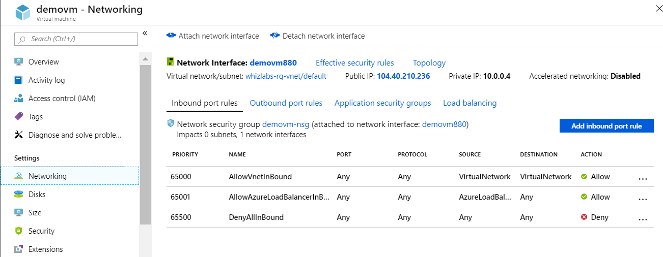 A team has a Virtual Machine defined in Azure. The Networking details are given below