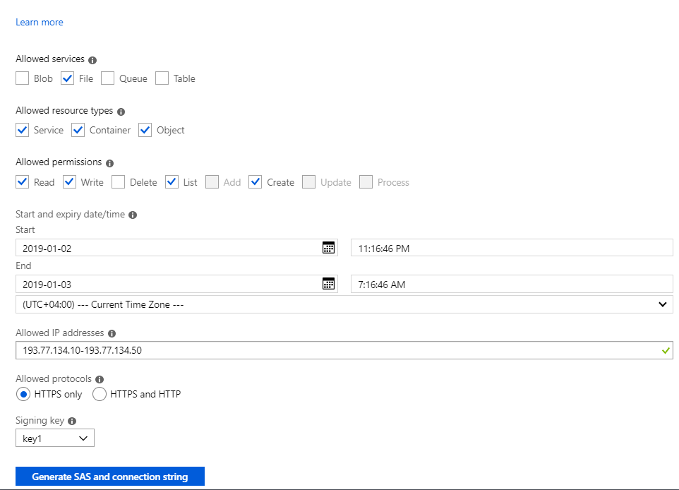 Your company has an Azure subscription. In the subscription, you go ahead and create an Azure file share named share1. You also create a shared access signature (SAS) named SASdemo as shown in the following exhibit.