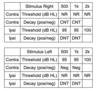 The ocular VEMP afferent pathway consists of the utricle and superior vestibular nerve branch and is recorded contralateral to the ear of stimulation. In this example, when the stimulus (125125 decibels dB SPL) is applied to the left ear, there is no recordable response from the right inferior oblique. The ear in question is the left ear as no repeatable waveforms were obtained.