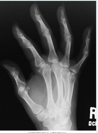 d.First metacarpal-carpal joint is shown free of superimposition