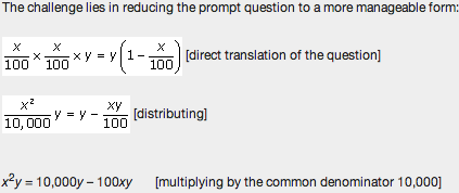 Is x% of x% of y equal to x% less than y ?