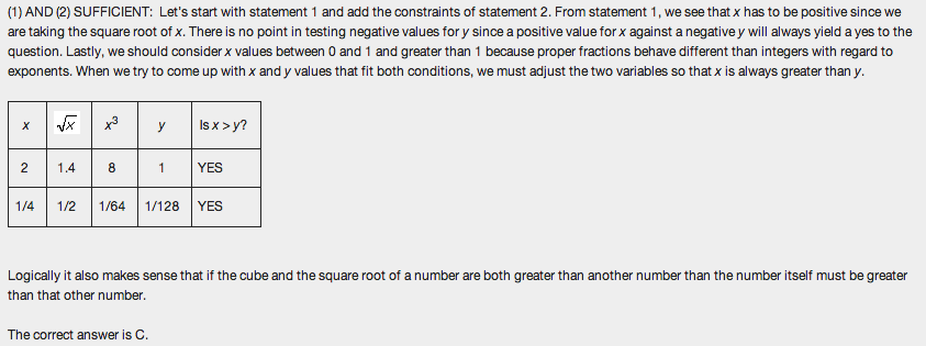 Always try to figure out the issue of the stem before you approach the statements. This way, you’ll be more focused on what you are looking for, thereby determining whether the statement is Sufficient or Insufficient more efficiently.
