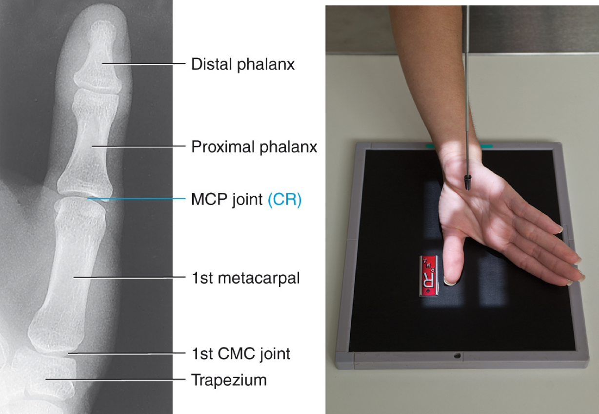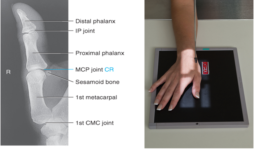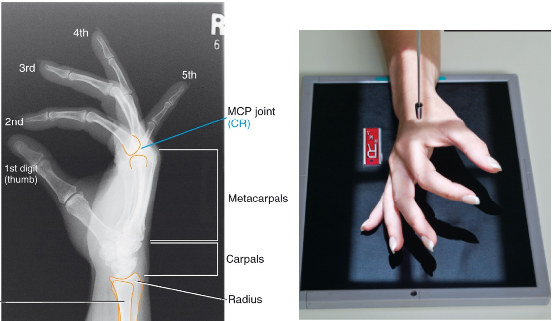 *if metacarpals only are of interest, thumb and fingertips can be touching IR (which will close IP joint spaces)