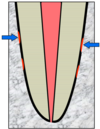 5.Over time – root canal stenosis may occur – pulpal tissue will be replaced with deposited hard tissue through “buldging hard tissue” with prior joining of fracture line with fibrous connective tissue - this is done primarily by the pulp - the reparative capacity of dental hard tissue should not be underestimated