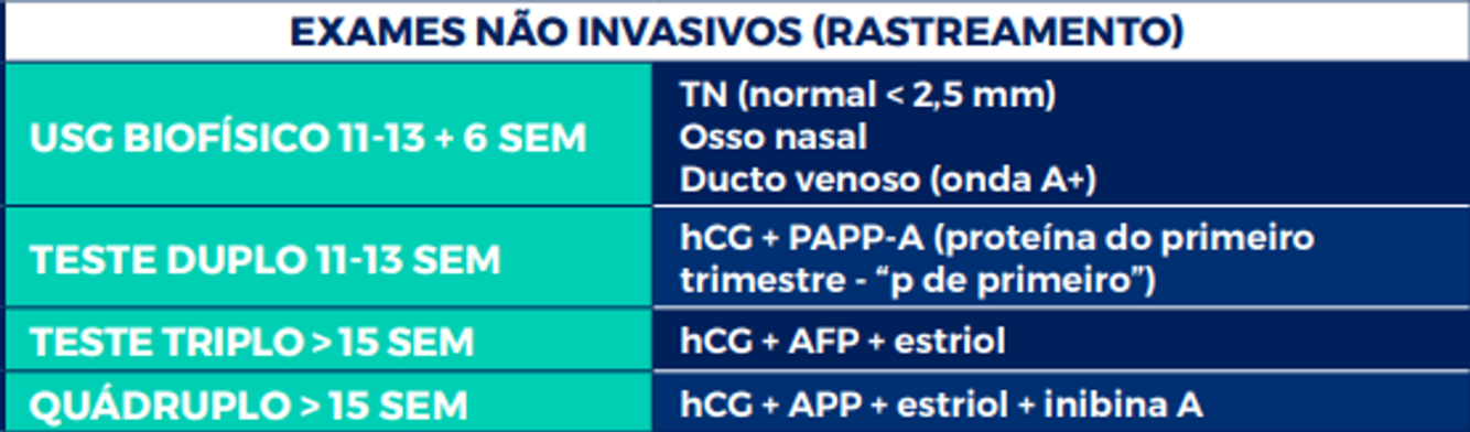 Quais são os exames não invasivos de rastreamento de cromossomopatias?