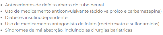 Suplementação de ácido fólico em gestações com risco de defeitos no tubo neural?