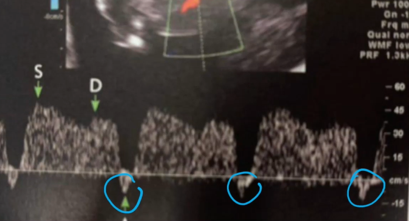 Como é a onda A reversa no USG doppler? O que ela indica?
