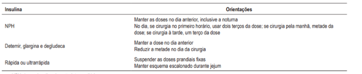 suspende regular e reduz a basal (metade ou ⅔) – se a cirurgia for: