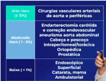 - cirurgia nao cardiaca de alto risco (vascular suprainguinal, intratoracica, intraperitoneal)